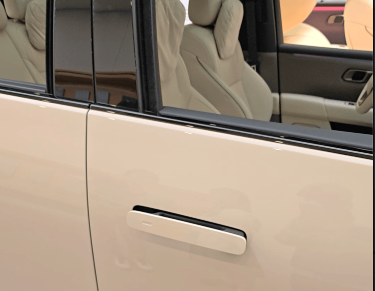 小米YU7 Max采用半隐藏翻转式门把手,当车辆感应到钥匙时,门把手会自动内翻。